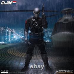 Joe: Snake Eyes - Deluxe Edition Mezco toyz one:12 collective. Enter Snake Eyes, the mysterious, highly classified commando and latest addition to the One:12 Collective! The One:12 Collective Snake Eyes is outfitted for stealth and functionality in all black. His chest harness can hold a group of 3 grenades (permanently attached) and his ninjato or falchion sword, his utility belt can hold his tanto knife, and his thigh holster can hold his handgun. Timber, Snake Eye's companion and pet wolf, is included and features 3 interchangeable head portraits as well as over 20 points of articulation.